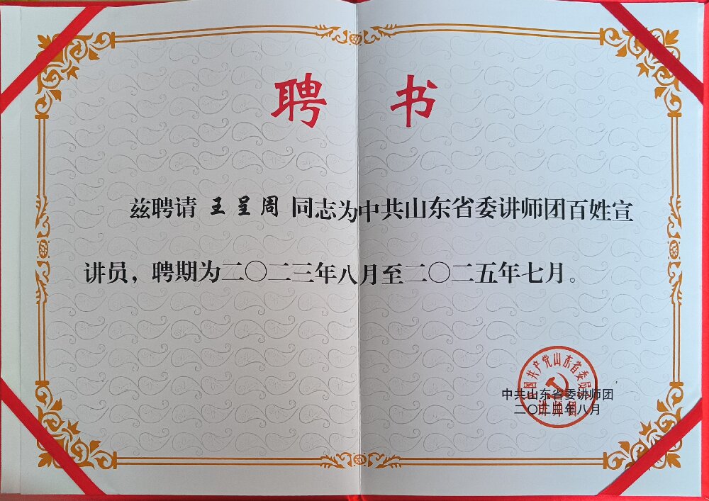 聚祥科技集團——王呈周受聘山東省委講師團百姓宣講員