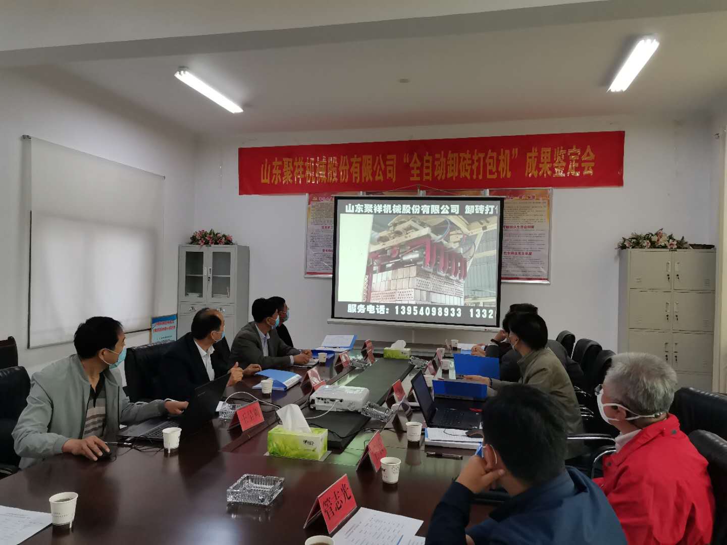 2020年4月28日,菏澤市科技局組織國內知名專家對山東聚祥機械股份有限公司全自動卸磚打包系統進行了科技成果鑒定。與會專家,通過聽取項目匯報、查閱相關資料、觀看全自動卸磚打包系統現場工作視頻,大家一致認為:山東聚祥機械股份有限公司全自動卸磚打包系統整體技術達到國內領先水平,建議進一步提高產品的智能化水平,加大產品的推廣力度。